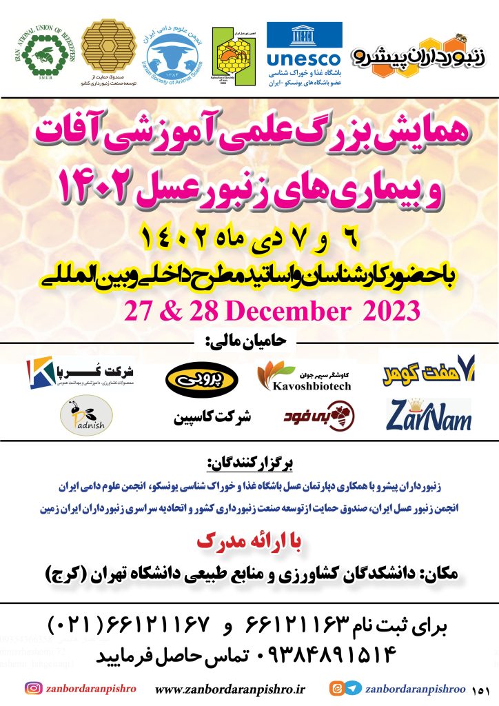 زنبورداران پیشرو با همکاری دپارتمان عسل باشگاه غذا و خوراک شناسی یونسکو و انجمن علوم دامی ایران و انجمن زنبور عسل ایران برگزار می کند:
